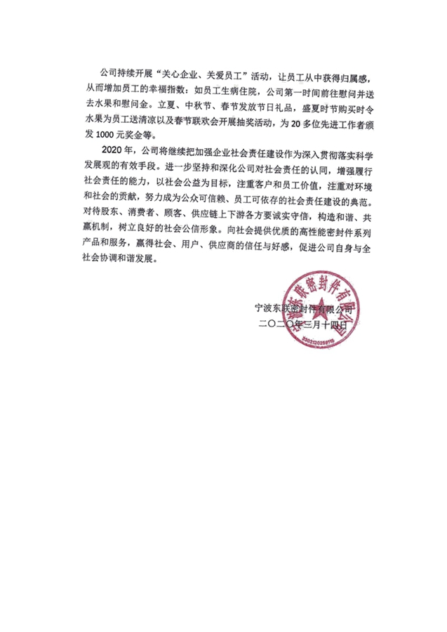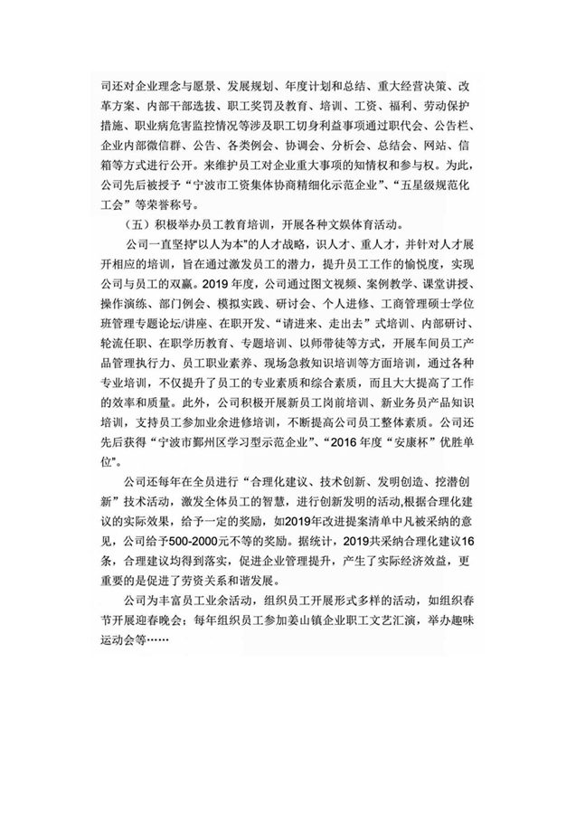2019年度寧波東聯社會責任報告