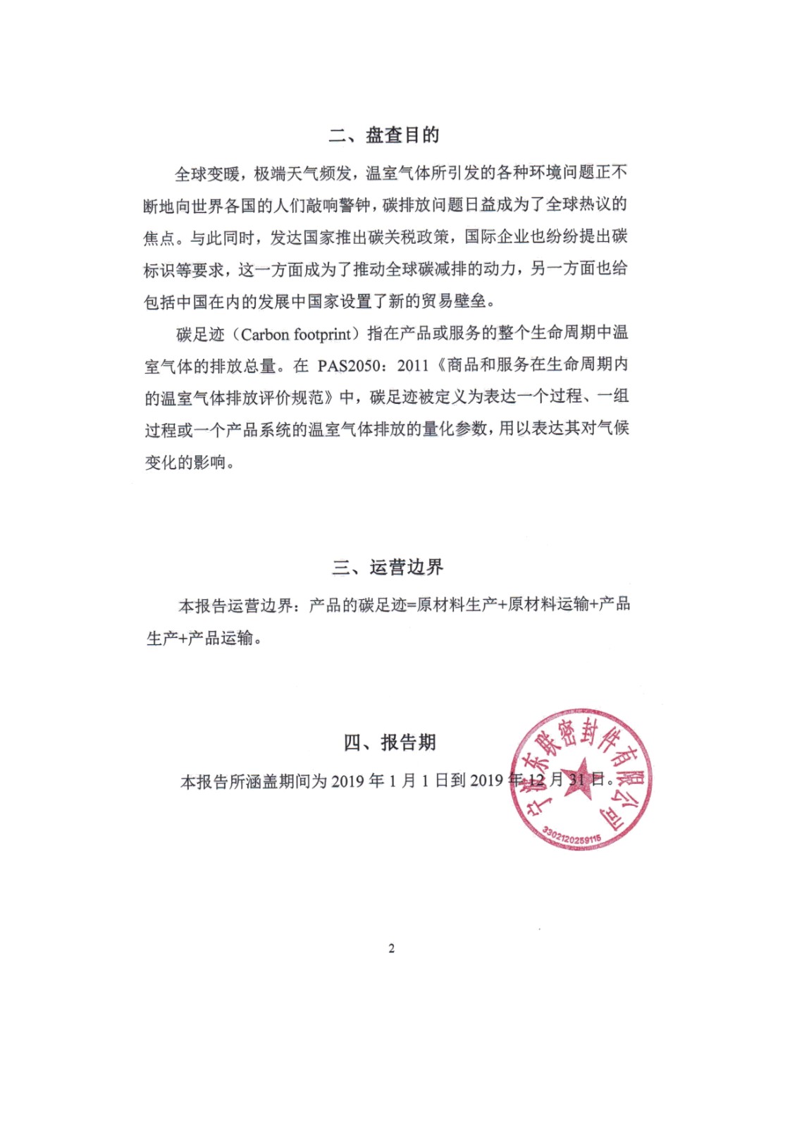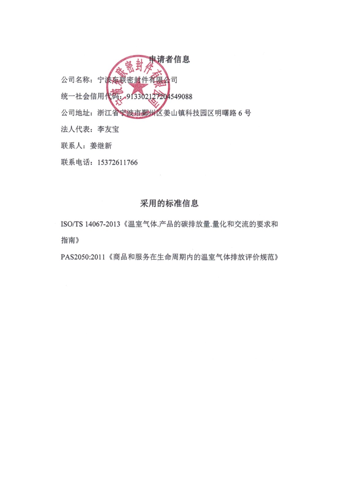 東聯(lián)密封件產(chǎn)品碳足跡2019年度